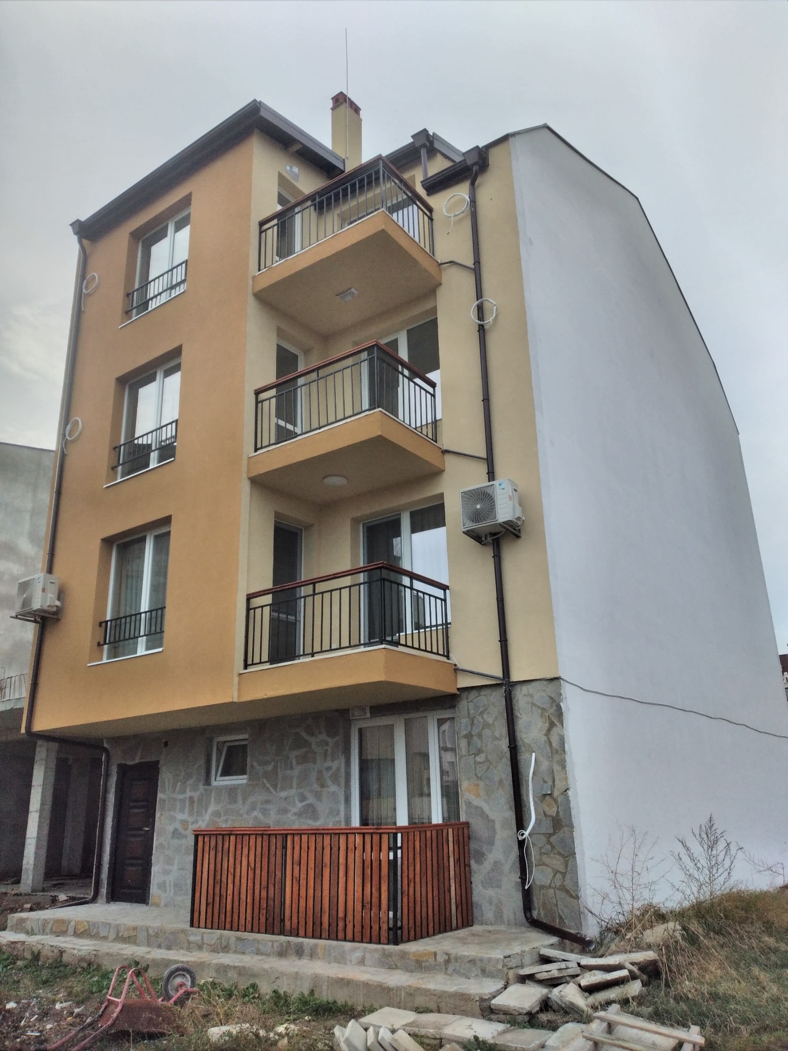 ДИРЕКТНО ОТ ИНВЕСТИТОРА!!! БЕЗ ТАКСА ЗА ПОДДРЪЖКА!!! С АКТ 16 Имаме удоволствието да Ви предложим за продажба 3 броя двустайни апартаменти в новоизградена четириетажна жилищна сграда, разположена на 200м. от плажа на красивия черноморски курорт Обзор в нов бързоразвиващ се квартал. Търговските улици са на 5мин. пеша. Цените на апартаментите са от 61 000 евро 62 000 евро /с ДДС/ в зависимост от етажност, степен на завършеност към момента на продажбата, изложение и площ. В площообразуването са включени: чиста площ на апартамента и съответен процент от общите части на сградата. В строителството на сградата са вложени висококачествени материали - висок клас дограма, тухли и топлоизолационна система. В имота и пред него е осигурено паркиране. Сградата няма такса за поддръжка. Настилки теракота, ламинат. Бани напълно завършени. Кухненски бокс с монтиран долен и горен ред шкафове, плот и аспиратор;